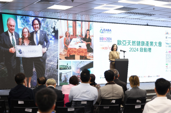 欧亚总会荣誉会长、香港生物科技协会主席于常海教授于大会中分享透过 BIOHK2024 国际生物科技展览暨论坛洞悉天然有机产业发展新机遇的方法,于教授表示香港因其特别行政区的独特地位而成为通往中国的门户,为寻求利用大湾区(GBA)持续增长的海外投资者提供了丰富的机会,加上国家主席早于2018年明确支持香港成为国际创新科技中心,这有利于本地及内地商家出海打进国际市场。
