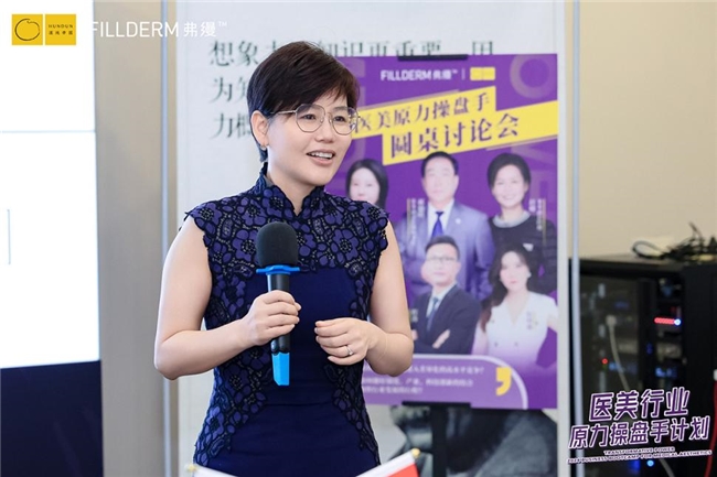 斐缦生物副总经理赵卿女士在发言中深入剖析了医美行业的发展现状、挑战与机遇。她表示:“技术研发驱动效率提升,医美行业的发展离不开技术进步和产品创新。前几年我们的弗缦学府的主要责任就是结合材料特点进行医美治疗的专业培训,开展临床研究获得循证医学证据。而这次联合混沌商学院启动的项目旨在搭建运营管理的学术交流平台,携手高品质的医美机构,共同挖掘需求,探讨行业自律和品质发展战略,上下游一起练好‘笨功夫’,良币驱逐劣币推动行业发展。”