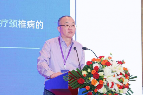 石氏伤科传承人、民盟盟员、主任医师梅立鹤进行《基于石氏伤科理论治疗颈椎病的经验分享》主题演讲
