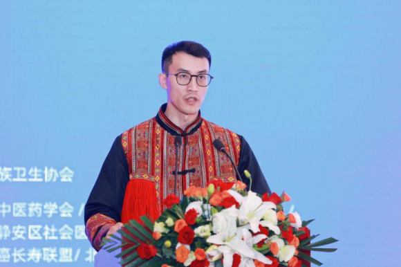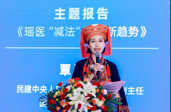 民建中央人口医药卫生委员会副主任、国际防癌长寿联盟主席、中国民族卫生协会副会长、覃氏瑶医第十三代掌门人、北京瑶医医院院长覃迅云教授致辞